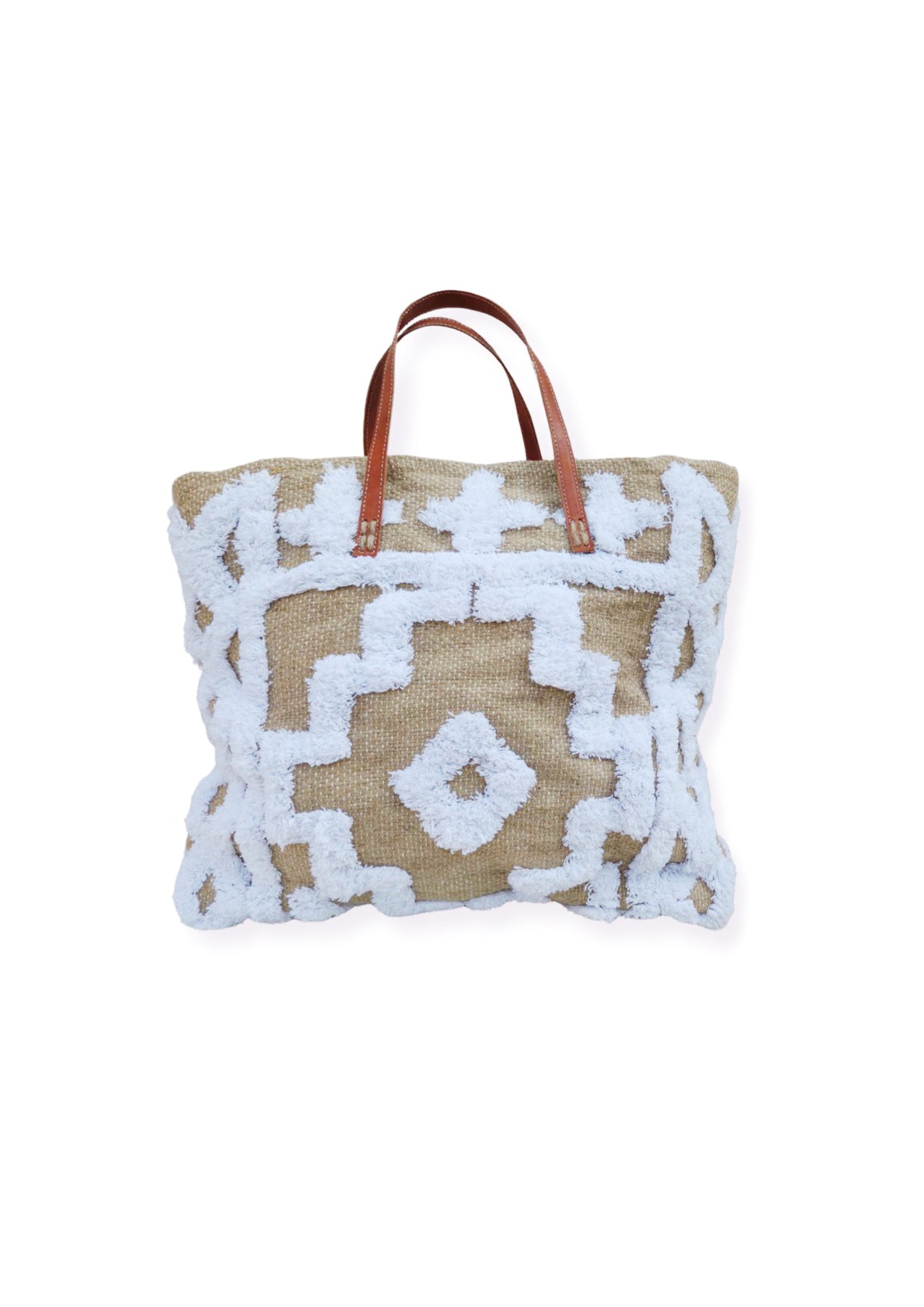 Offrez-vous un souffle d’évasion avec le Cabas "Atlas Doux", un hommage à l’artisanat berbère revisité avec douceur et modernité. Tissé à la main dans notre atelier marseillais à partir de jute naturelle, ce cabas généreux est orné de motifs géométriques tuftés en coton blanc inspirés des tapis du Haut Atlas.
