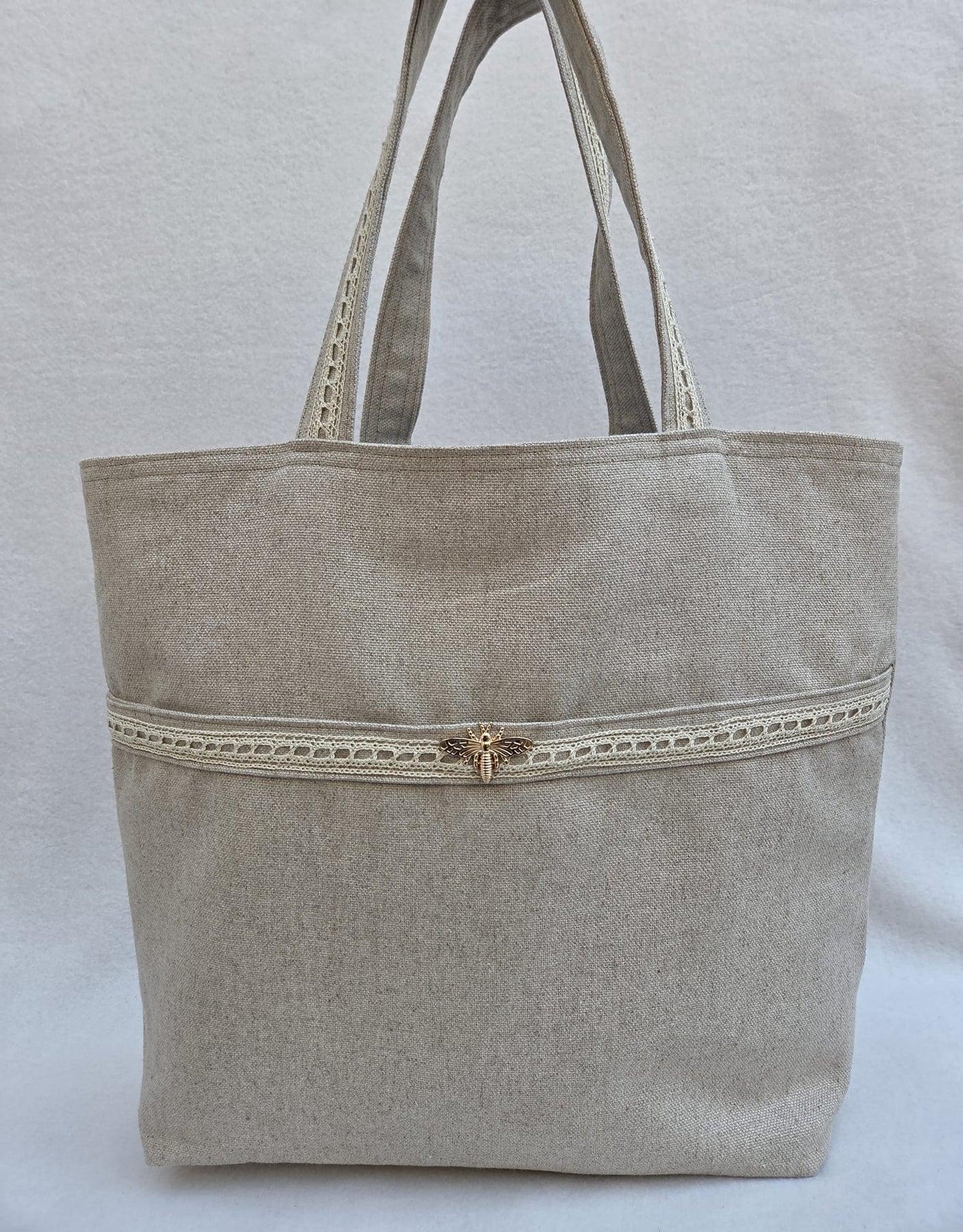 Discret, raffiné et infiniment doux, le sac “Écru Bohème” incarne l’élégance simple et la beauté des matières naturelles. Confectionné en lin écru de belle tenue, il est sublimé par un galon de dentelle ajourée et notre emblématique abeille dorée.