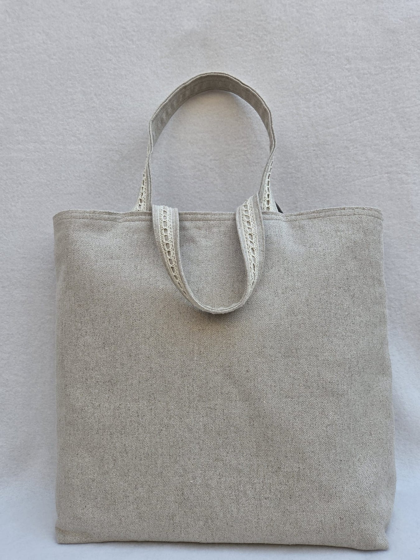 Sac “Écru Bohème” – Lin naturel & dentelle fine